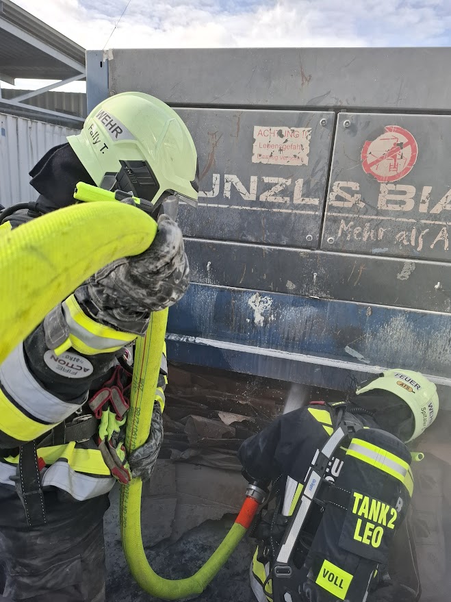 Am Einsatzort eingetroffen, fanden wir einen Karton-Presscontainer vor, in dem es zu einem Kleinbrand gekommen war. Durch erste Löschmaßnahmen durch Mitarbeiter der Firma konnte eine größere Brandausbreitung verhindert werden!