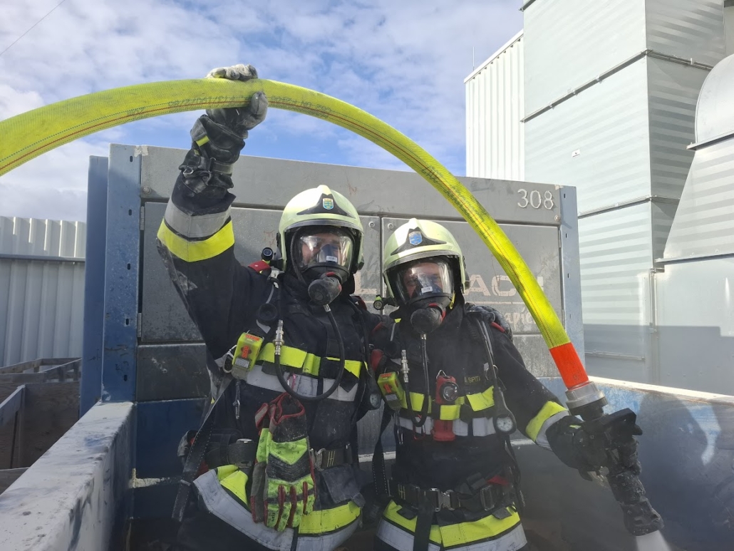 Der Atemschutztrupp räumte den angebrannten Teil des Containers aus und führte mittels C-Hohlstrahlrohr Nachlöscharbeiten durch.