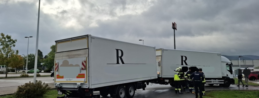 Am 13. Oktober wurde die Feuerwehr Leobendorf um 11:36 Uhr zur Bergung eines Großfahrzeuges bei der Zufahrtsstraße zum Einkaufszentrum (EKZ) Leobendorf alarmiert.