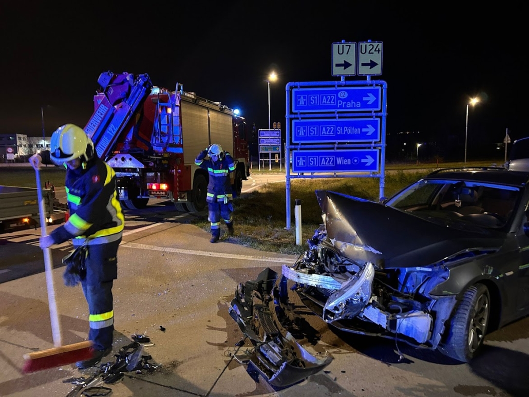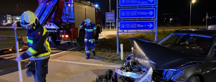 Am 22. November wurde die Feuerwehr Leobendorf um 19:44 Uhr zu einer PKW-Bergung auf die Bundesstraße B305/Kreisverkehr Autobahnabfahrt S1 alarmiert.